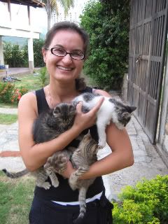 The kittens I'm holding are from inside our compound. Their mother is so thin that she's just skin and bone. I would love to start feeding her, but then what will she do when I move?